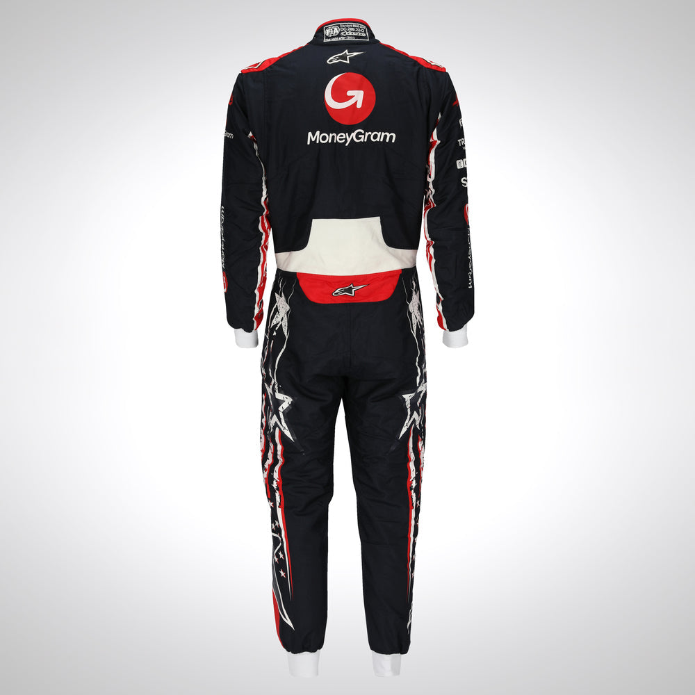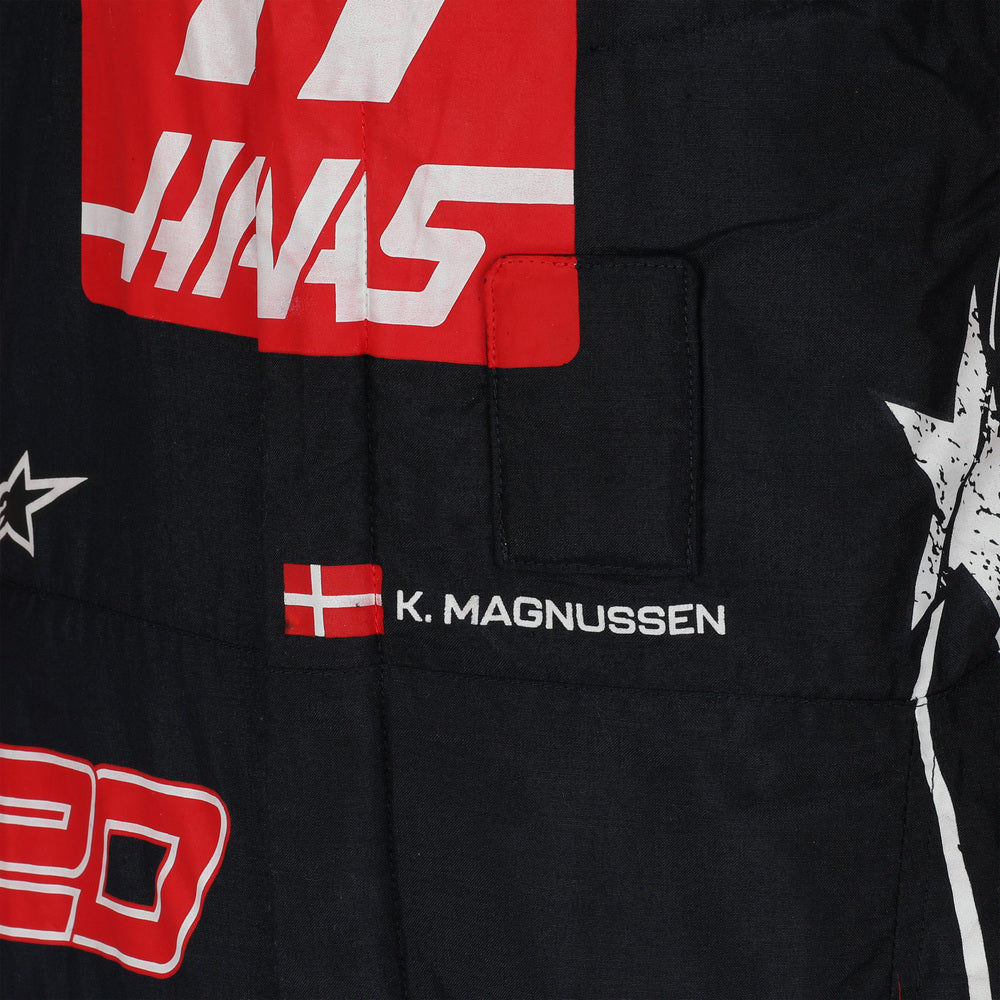- Authentic Design: An exact replica of the Haas F1 Team race suit worn by Kevin Magnussen at the 2023 United States Grand Prix, featuring precise logos and sponsor branding.